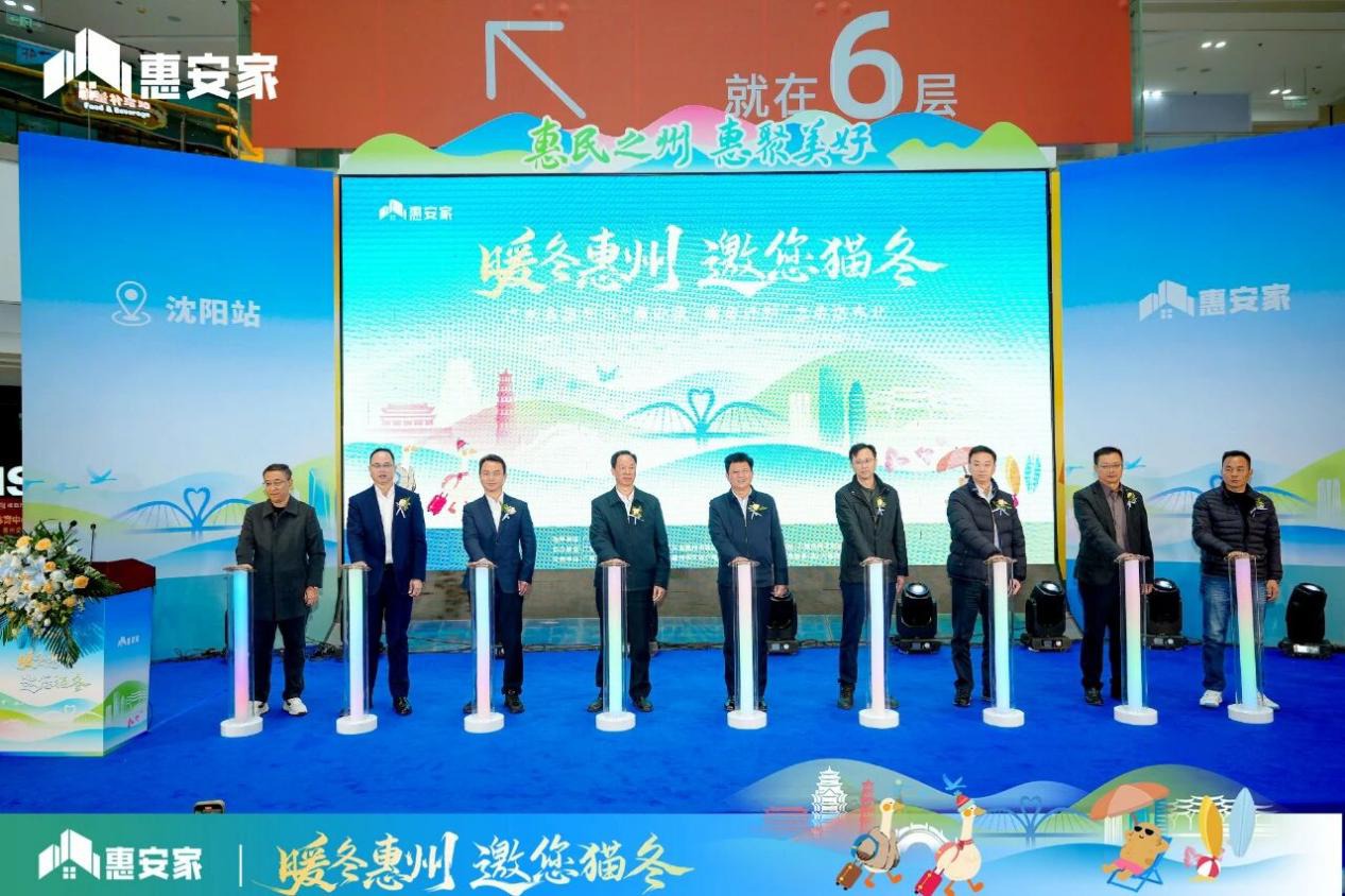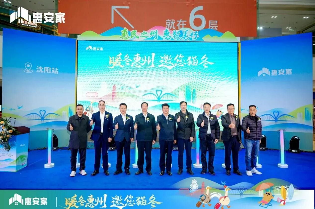 11月16日,“暖冬惠州 邀您猫冬”——惠州市“惠安家・暖冬计划”之走进东北活动启动仪式,在沈阳市文化路万达广场隆重举行。惠州市人民政府副市长段致辉,沈阳市房产局副局长廖文予、市场监管处处长周国伟,惠州市住房和城乡建设局局长邬刚、副局长徐金勇,惠州市大亚湾开发区管委会副主任何珩、惠州市仲恺高新区管委会副主任李博、惠州市惠城区住房和城乡建设局局长黎明、惠州市惠阳区住房和城乡建设局局长李洪艺、惠州市惠东县住房和城乡建设局局长曾奕鹏、惠州市博罗县住房和城乡建设局局长邓田芳、惠州市龙门县住房和城乡建设局局长王凯山、惠州市大亚湾开发区城乡建设和综合执法局局长吕游、惠州市仲恺高新区城乡建设和综合执法局总经济师李烽平、沈阳市房地产业协会会长赵贵武、秘书长孙晓旭,惠州市房地产业协会会长黄新华、党委书记朱文中,贝壳找房沈阳站运营总经理韩英杰,贝壳找房惠州站城市总经理史红飞、新房总经理董伟,惠州参展企业代表、沈阳当地媒体、中介同仁出席了本次活动,活动吸引了当地市民朋友数百人,共同见证这场南北联动的暖冬盛会。