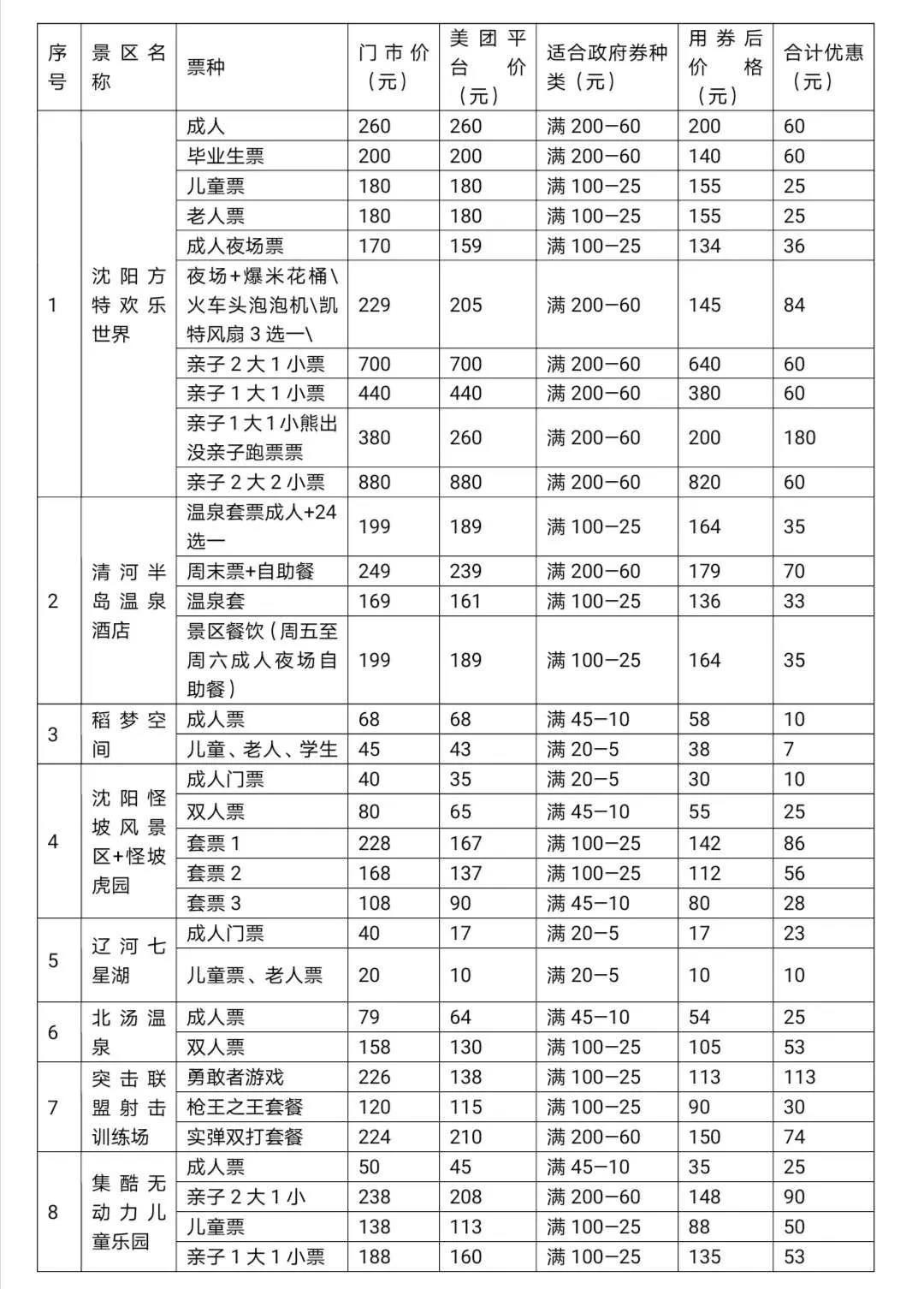 消费券仅能用于线上购买沈北新区8家景区(沈阳方特欢乐世界 、清河半岛温泉酒店、稻梦空间、沈阳怪坡风景区、辽河七星湖湿地公园、北汤温泉、突击联盟射击训练场、集酷无动力儿童乐园)指定票种,且须线下使用,领取的每张消费券的有效期为领取时刻起7天(168小时),过期作废,所有通过优惠券购买的有效期均至9月30日。