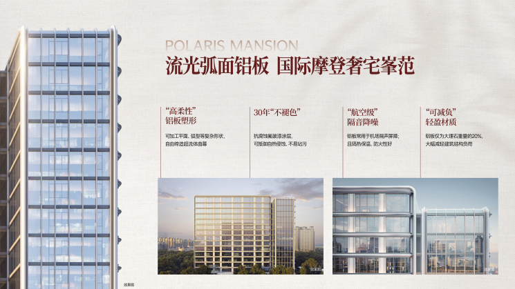 为勾勒盛京的繁华与静谧,盛京文華选用“高柔性”铝板,塑造出流畅的超流体曲幕立面。铝板表面覆以抗腐蚀氟碳漆涂层,确保30年不褪色,从容抵御自然侵蚀,而其重量仅为大理石的20%,以轻盈体态勾勒出城市的理想栖居轮廓。