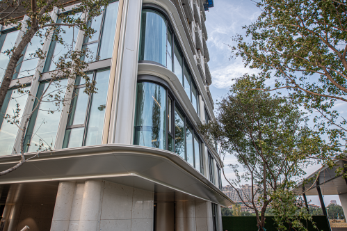 美学的高级呈现,往往是挑剔的结果。设计团队历经180天的精研与调试,在不同光线条件下反复比对,最终将外立面色彩演进为高级灰玻璃与铝板结合体系,强化水平延展的线条韵律,让流动的立面成为匠心的微观转译。