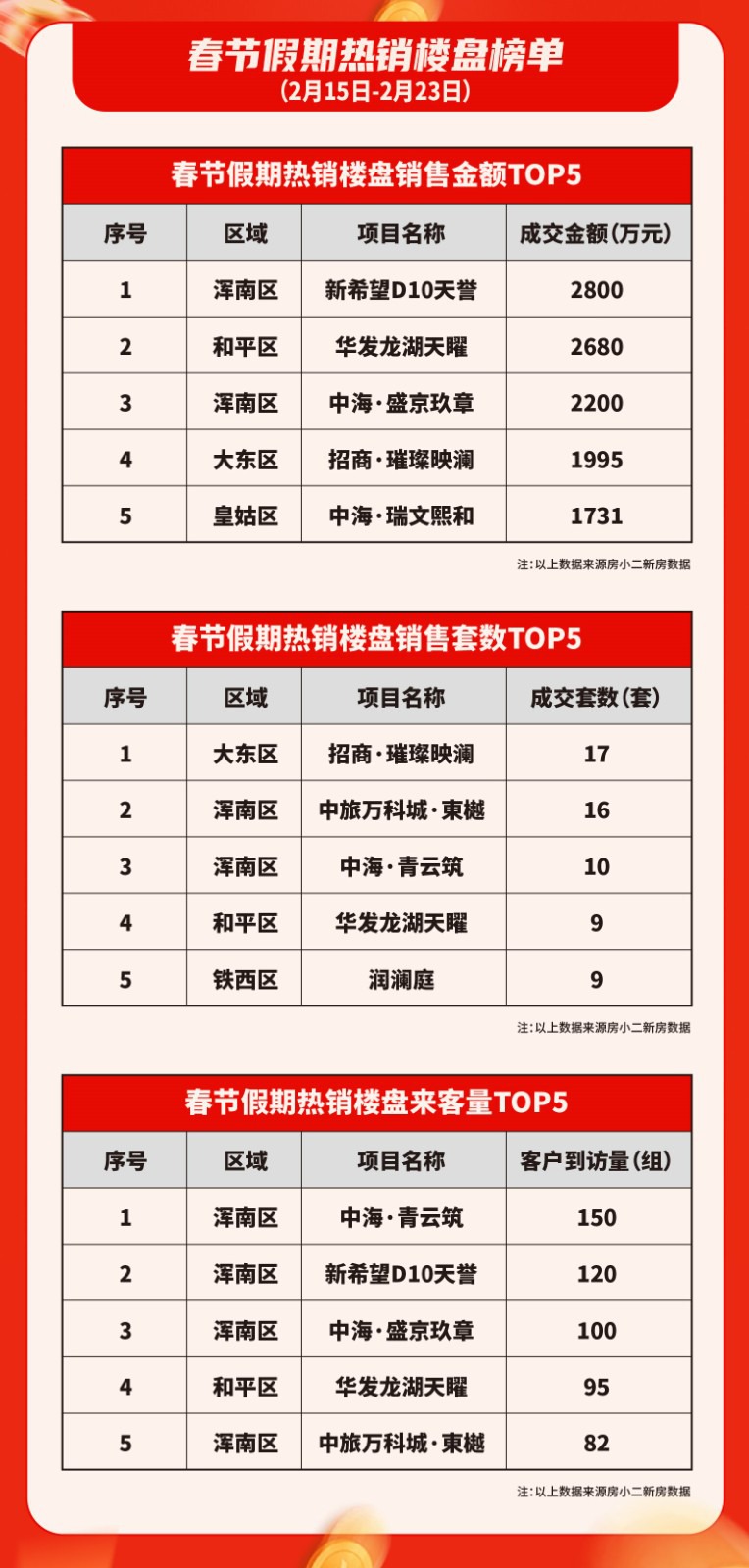 2026 年沈城楼市春节假期(2 月 15 日 - 2 月 23 日)成绩单新鲜出炉,房小二网用一组亮眼数据,宣告了沈阳楼市的强劲复苏势头。